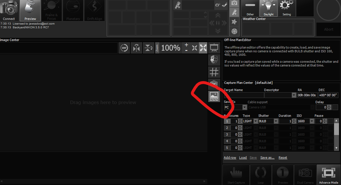 Also, make sure you have this toggle button lit for the thumbnail to show. Thumbnails are only available when you save to PC.