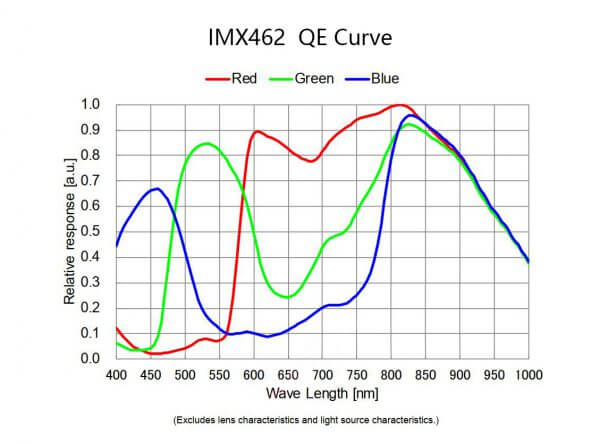 The QE curve of the Mars-C camera is unique. The sensitivity reaches its peak at 800-850nm, and the RGB is gathered together, which has very strong infrared sensitivity.