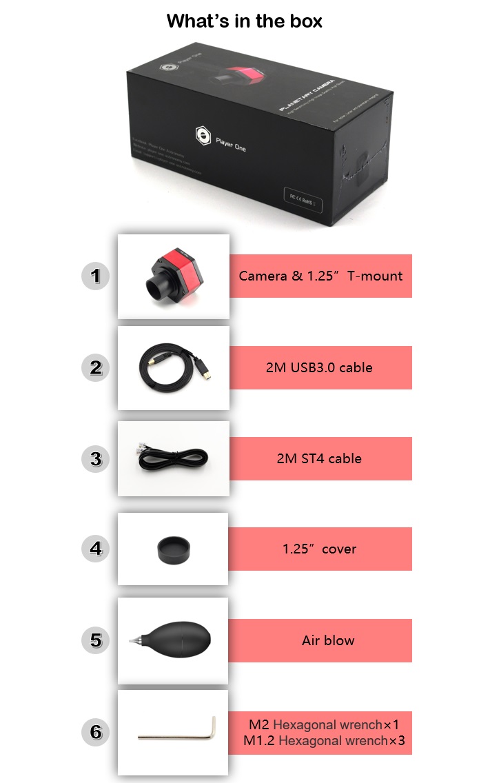 The naming of Player One Astronomy cameras is unique. For example, we name the planetary cameras after planets (They are Mercury, Venus, Mars, Jupiter, Saturn, Uranus, and Neptune, Earth is not included). The size of each planet to a certain extent represents the size of camera sensors. We will name Saturn with a 1-inch sensor camera, and for Mars, we will name it with a ½.8 inch sensor camera. All names will be engraved on the housing of the cameras.