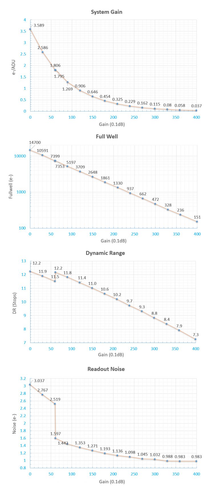 Regarding readout noise, we solemnly promise that all values are obtained from actual tests. And for users, you could use Sharpcap 3.3 for testing. SC3.3 has a function called Sensor Analysis, provide a very simple way to test readout noise.