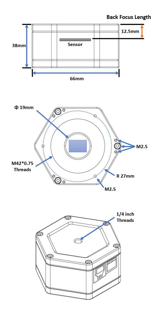 The planetary cameras developed by Player One Astronomy uses a scientific and technological regular hexagon to construct the main body line, supplemented by round chamfers to achieve both rigidity and flexibility. The positive orange, which is imply solar, is matched with the low-key and steady black, and the super-fine frosting process on the entire surface makes the camera look luxurious and cool, highlighting the style of high-end players, can’t take my eyes off 😀