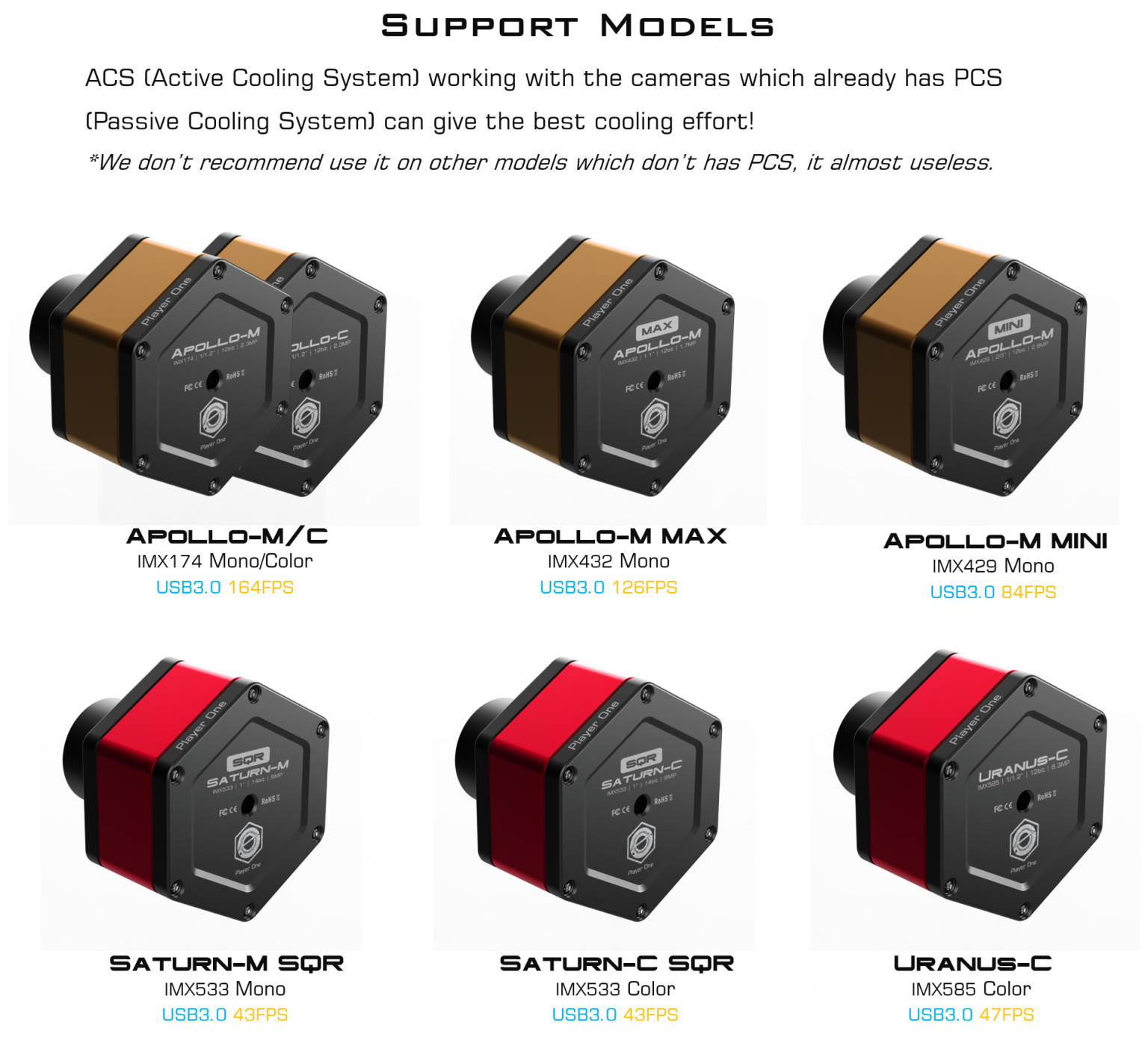 ACS is only useful on some uncooled cameras, not all of them. The camera must already has PCS in it, so that heat from sensor could transmit to the shield, then the ACS can dissipate heat by air cooling.