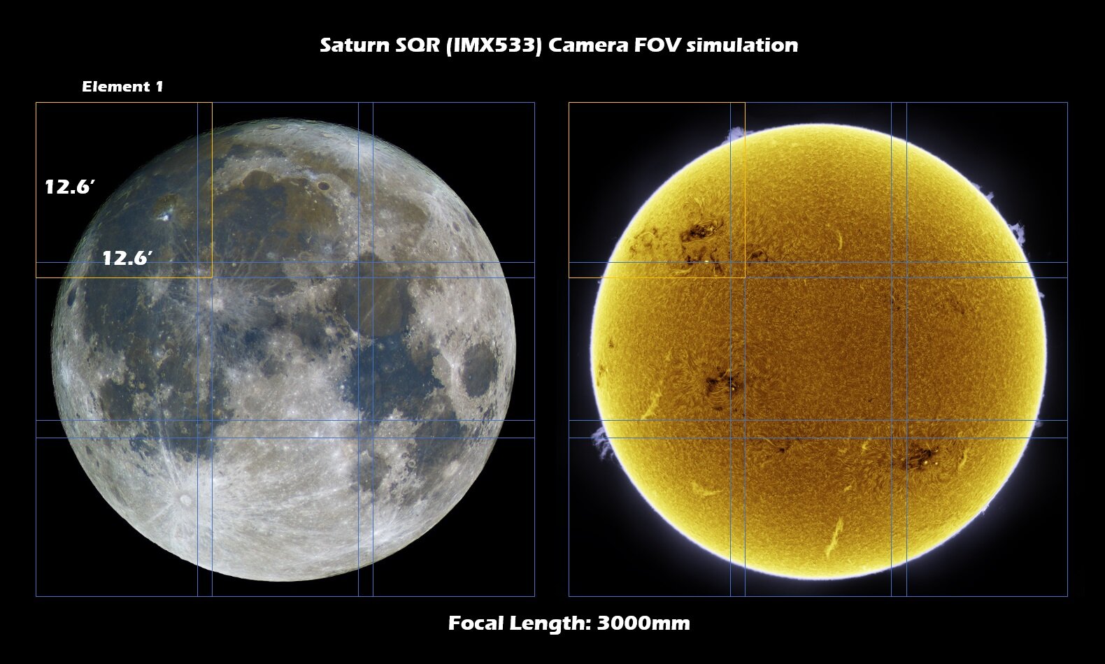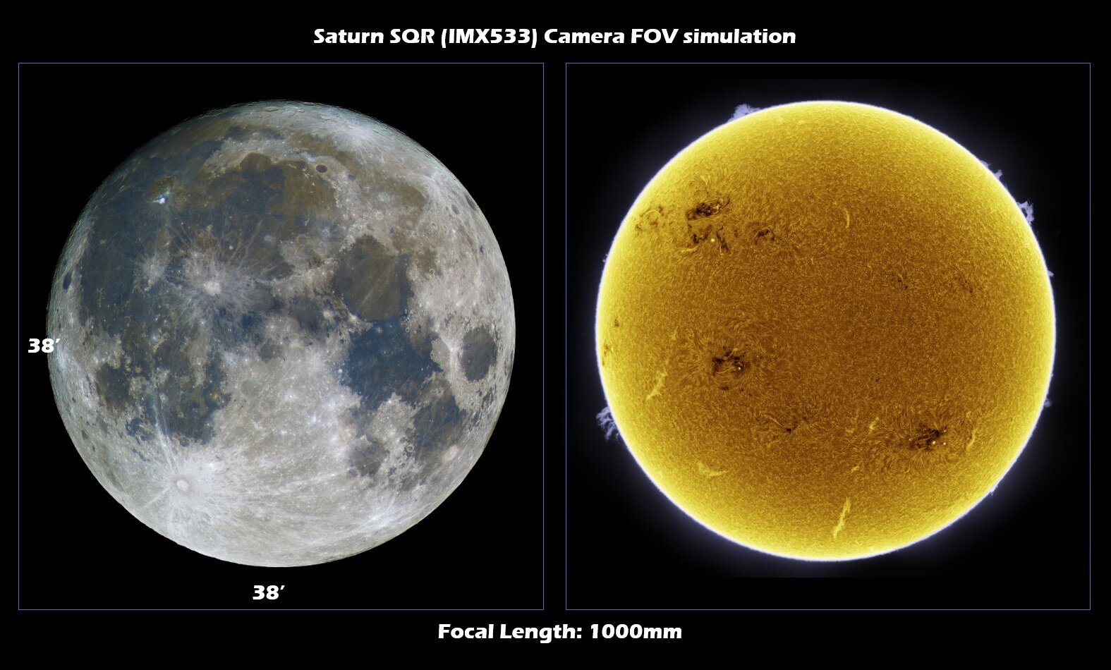Saturn SQR camera also very good for lunar and planetary imaging, its 1″ big format and 9MP total pixels, easier to capture full disk of the Moon and the Sun, or make mosaic more efficient.
